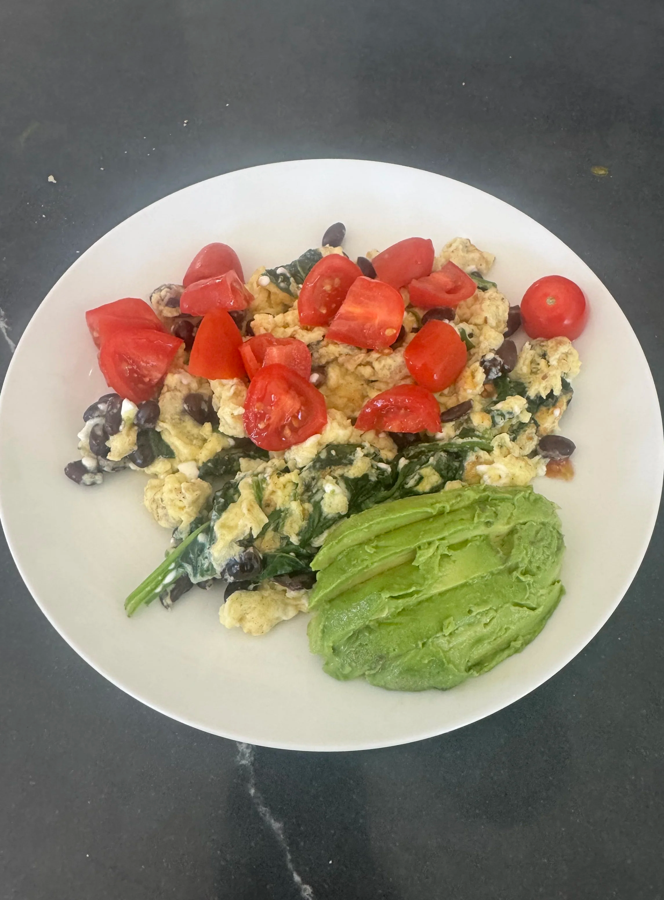 I love adding beans and avocado for fiber and adding in liquid egg whites for more protein!